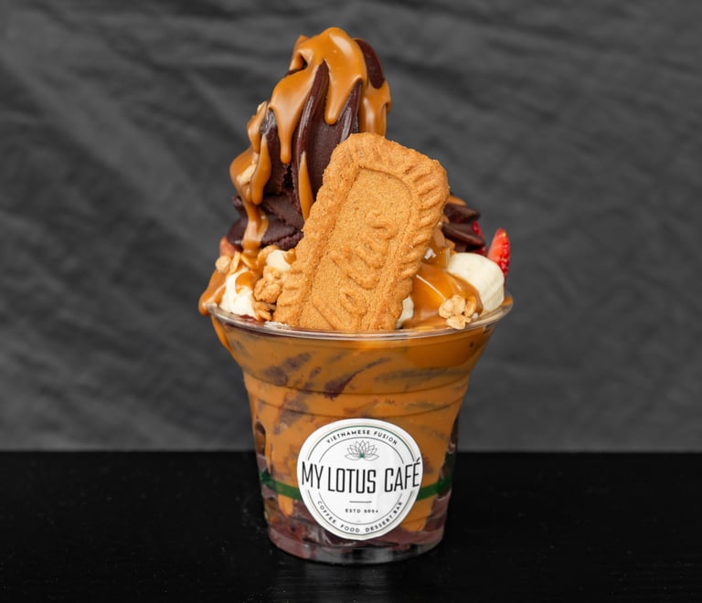 When you visit My Lotus Café, you will be delighted by our irresistible dessert menu! If you have a sweet tooth, you will find yourself in heaven with our wide range of indulgent treats such as acai bowls, crispy waffles, refreshing bingsu, heavenly cookies, extravagant crazy shakes, rich hot chocolate, and our signature lattes.